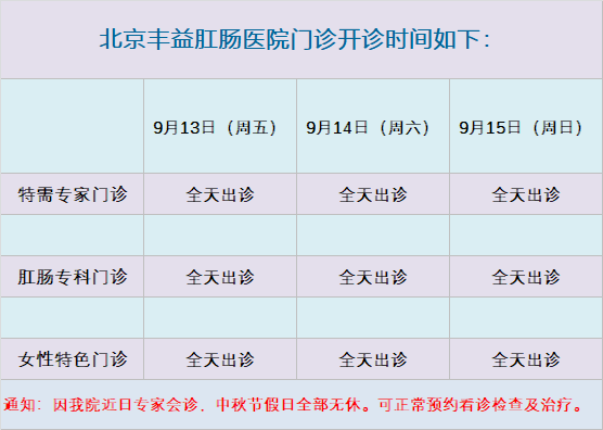 北京丰益肛肠医院中秋节假期门诊安排公布了!