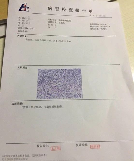 2019年6月14日,活检结果出来了,病理诊断:低分化印戒细胞癌!